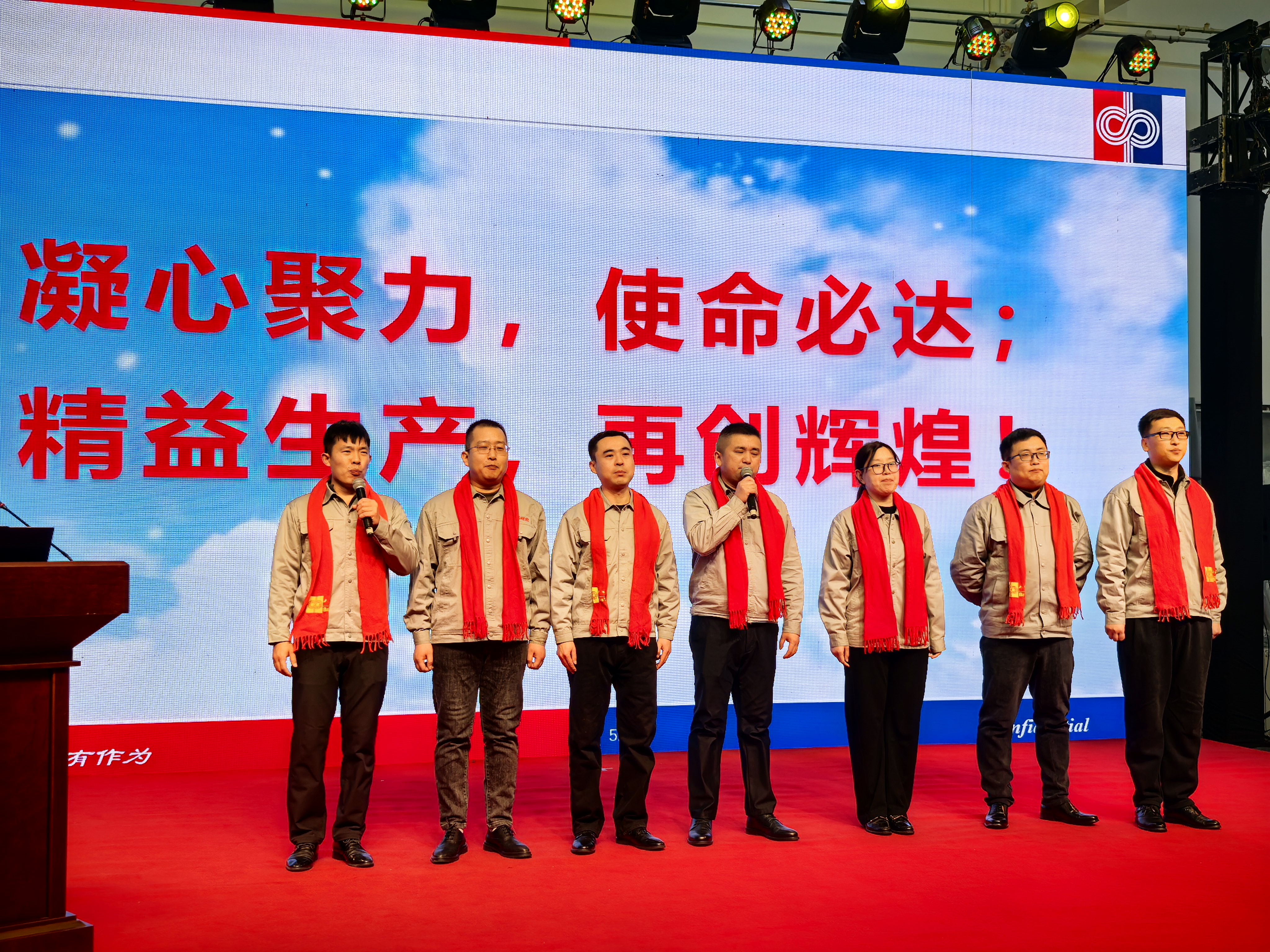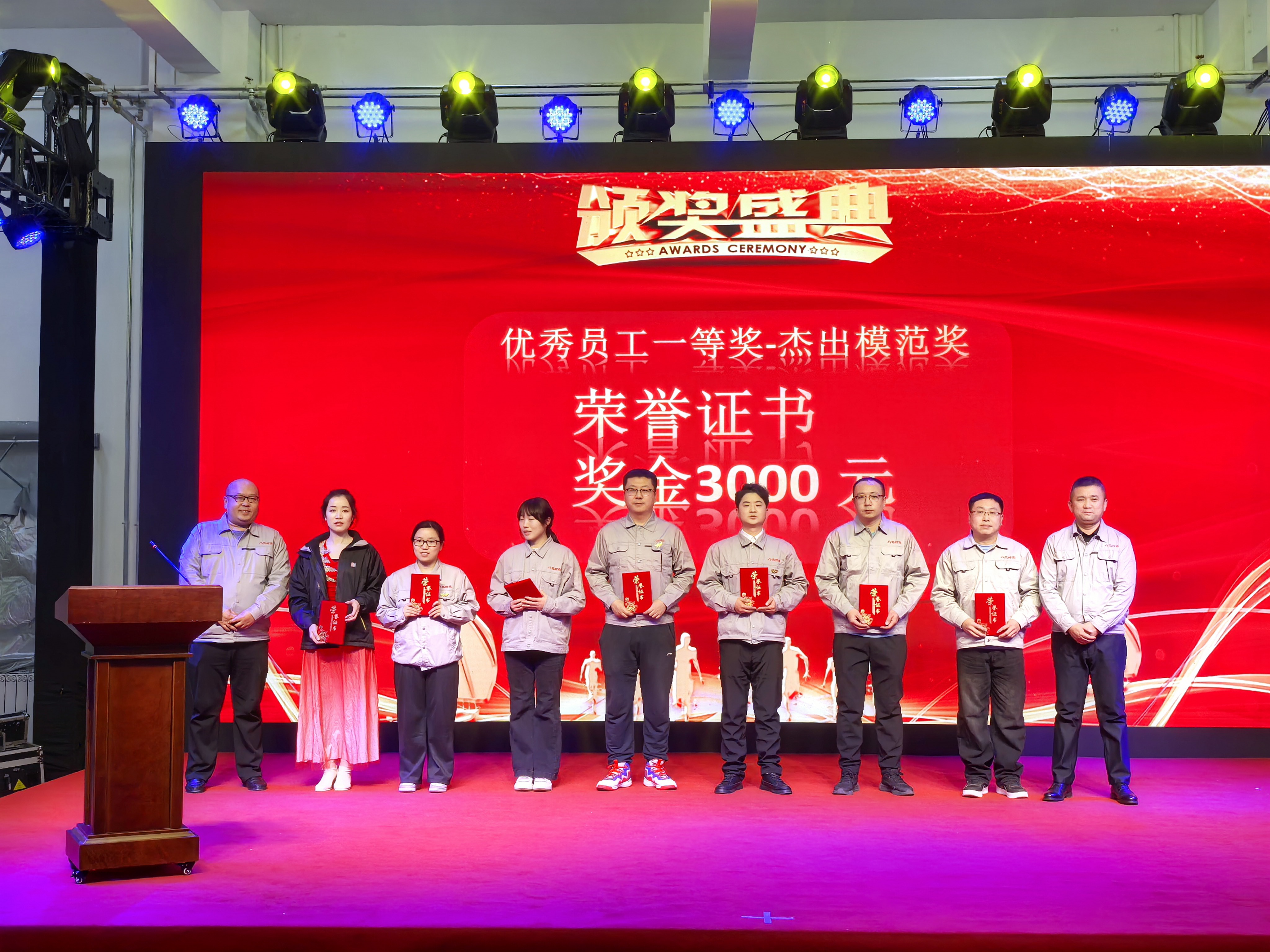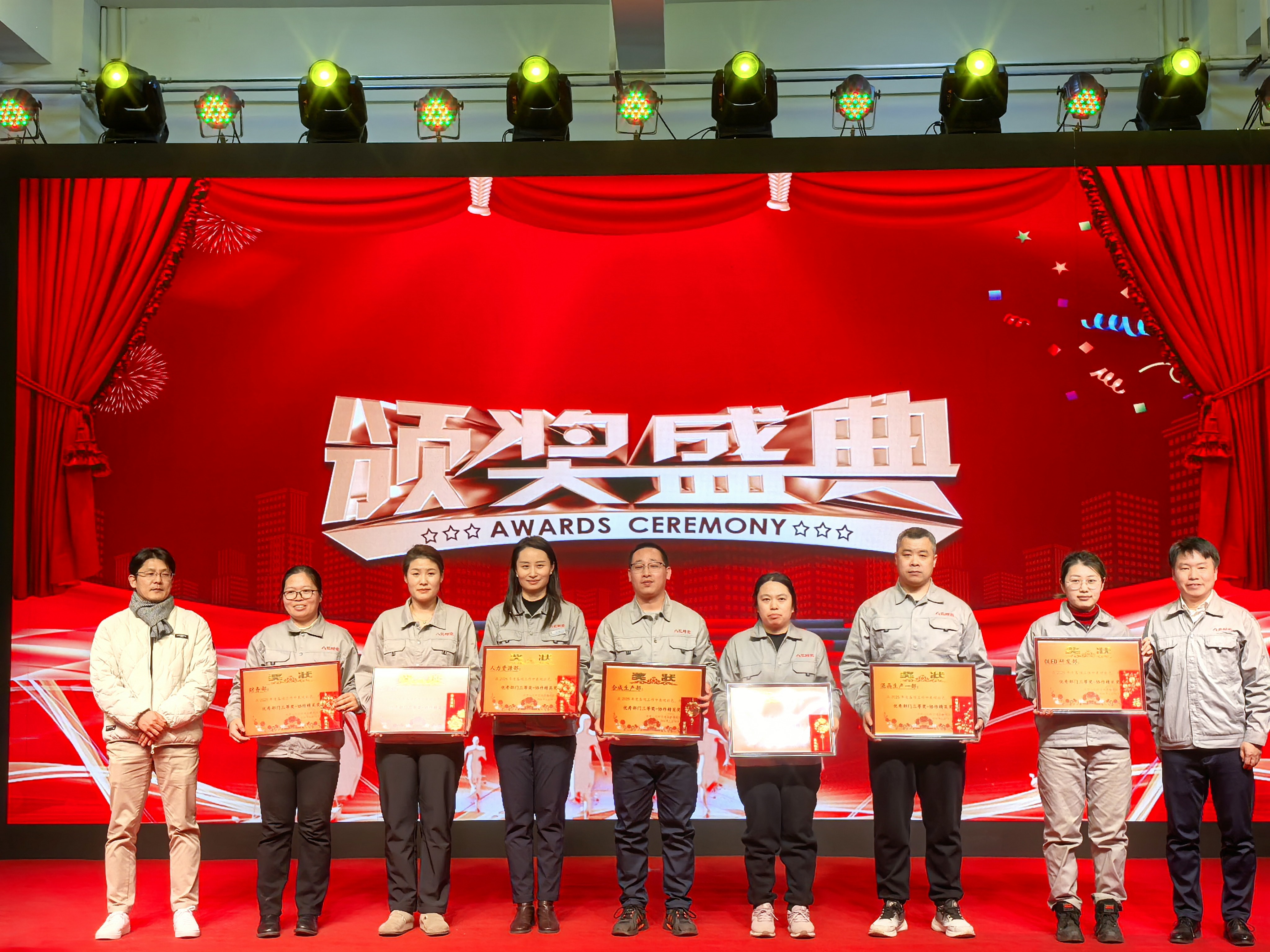 董事长讲话结束后,最受瞩目的表彰颁奖环节正式开启,灯光聚焦荣耀时刻,掌声致敬奋斗先锋。本次表彰覆盖个人与团队多个维度,奖项设置丰富多元,彰显公司对卓越的追求与对奋斗的尊崇。个人荣誉方面,从“革新献策奖”、“精益之星奖”、“杰出模范奖”到“感动八亿奖”,百余位同仁凭借坚守与奉献、创新与实干站上荣耀舞台;“学用标兵”系列奖项与“匠心育才模范”特别奖的颁发,更传递出公司对学习成长与人才培养的重视。