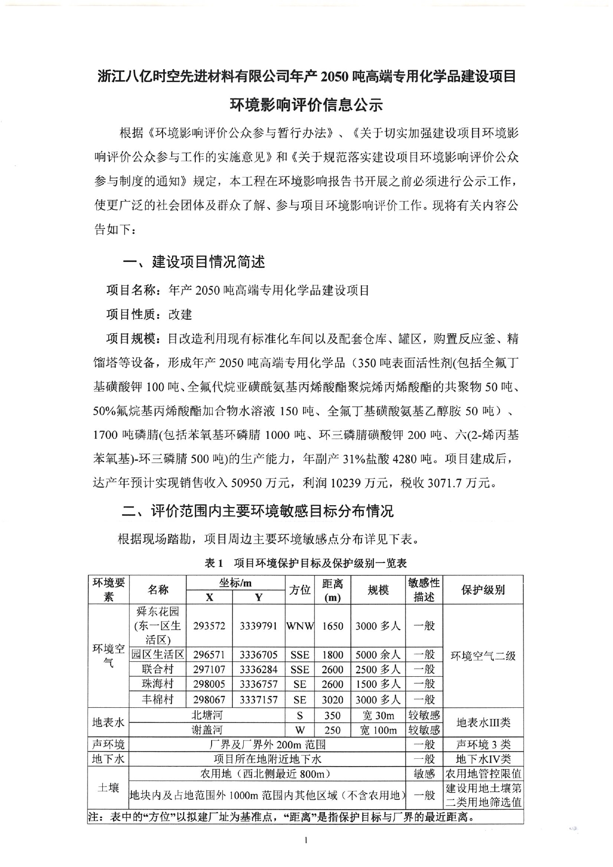 浙江八亿时空先进材料有限公司年产 2050吨高端专用化学品建设项目环境影响评价信息公示