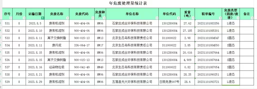 2023年8月危废转移公示